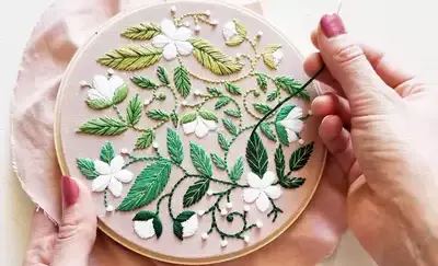 EmbroideryEmbroidery is the art or handicraft of decorating fabric or other materials with needle and thread or yarn. Embroidery may also incorporate other materials such as metal strips, pearls, beads, quills, and sequins. Embroidery is available with a wide variety of thread or yarn color.